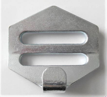 dvojitý hák, nejpoužívanější ukončovací prvek, používá se u pásů 25mm, 35mm, 50mm, 75mm šíře